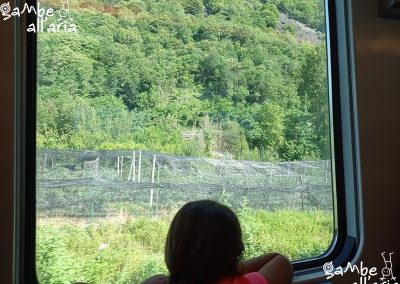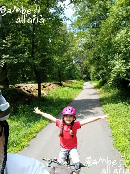 Il nostro terzo giorno sul Sentiero di Valtellina inizia con una sosta di riscaldamento alla pista di pump track. Oggi abbiamo tutta la giornata per percorrere la terza tappa: ce la prendiamo quindi comoda. Questa tappa è  una sosta continua tra i numerosi parchi gioco che troviamo proprio lungo il percorso,  tra ponti da attraversare e soste al fiume. Sicuramente da segnalare in zona Berbenno la possibilità di prendere il sole e  fare il bagno in un affluente dell’Adda. Prima di Ardenno pedaliamo per qualche chilometro su fondo sterrato.  L’unica nota negativa di questa tappa è la deviazione da Ardenno a Paniga. Qui purtroppo c’è un tratto davvero pericoloso: dopo l’invaso di Ardenno in prossimità del Chiosco che si vede dalla strada statale: la deviazione ci porta sulla statale per qualche chilometro. La deviazione è indicata sul sito ufficiale della ciclabile ma purtroppo l’avevamo sottovalutata. Con i bambini non sa da fare! Suggeriamo di saltare questo tratto sfruttando il treno che corre quasi sempre vicino la ciclabile. Praticamente le indicazioni ti buttano sulla statale, ti costringono ad attraversare la corsia di immissione nella galleria (strada nuova che collega la Valtellina a Colico)  e dopo la rotonda ti ritrovi sulla vecchia strada schiacciato tra il guardrail e le macchine che sfrecciano. Sono stati i chilometri più lunghi di tutto il viaggio. Finalmente dopo circa 3 km ritroviamo le indicazioni su strade secondarie e poi abbandoniamo la ciclabile per raggiungere l’hotel La Ruota a Morbegno www.hotellaruota.com.